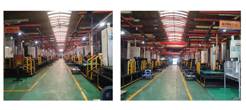 公司機(jī)械加工采用由加工中心組成的柔性加工單元,現(xiàn)有日本臥式加工中心38臺(tái)(其中工作臺(tái)800mm*800mm共18臺(tái);630mm*630mm共20臺(tái)),1臺(tái)馬扎克車削加工中心。各類立式加工中心共計(jì)40余臺(tái)。